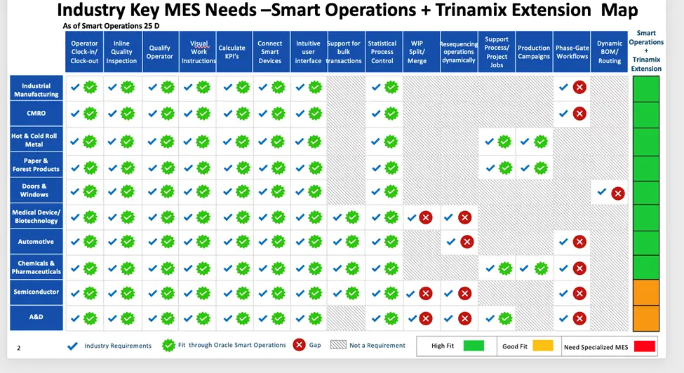 Industries with specialized MES requirements leverage Trinamix extensions to complement Smart Operations until Oracle delivers these functions natively. This hybrid model blends Oracle’s standard cloud capabilities with targeted industry add-ons, ensuring continuity and upgrade compatibility without disruption.