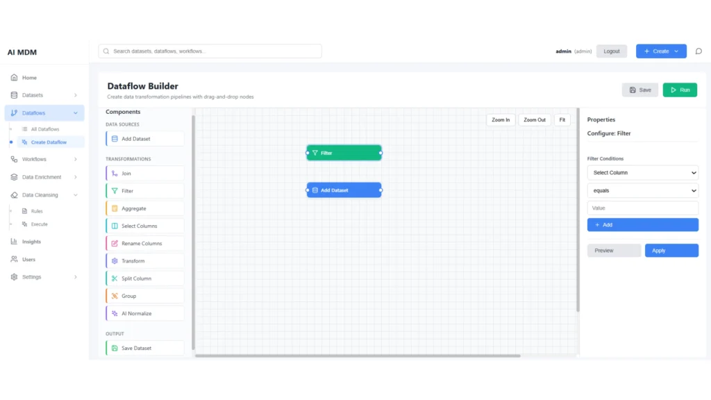 Trinamix Dataflows combine AI intelligence with visual, low-code pipelines to prepare master data at scale. These reusable flows automatically standardize, enrich, and structure data, ensuring new sources are onboarded quickly without repeated manual effort.