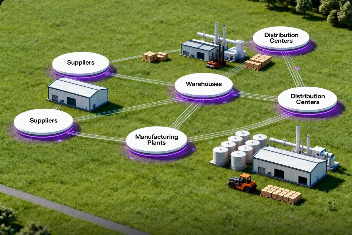 Improve supplier allocation and inbound material flows by simulating cost, distance, and transportation trade-offs across multiple supplier locations.
